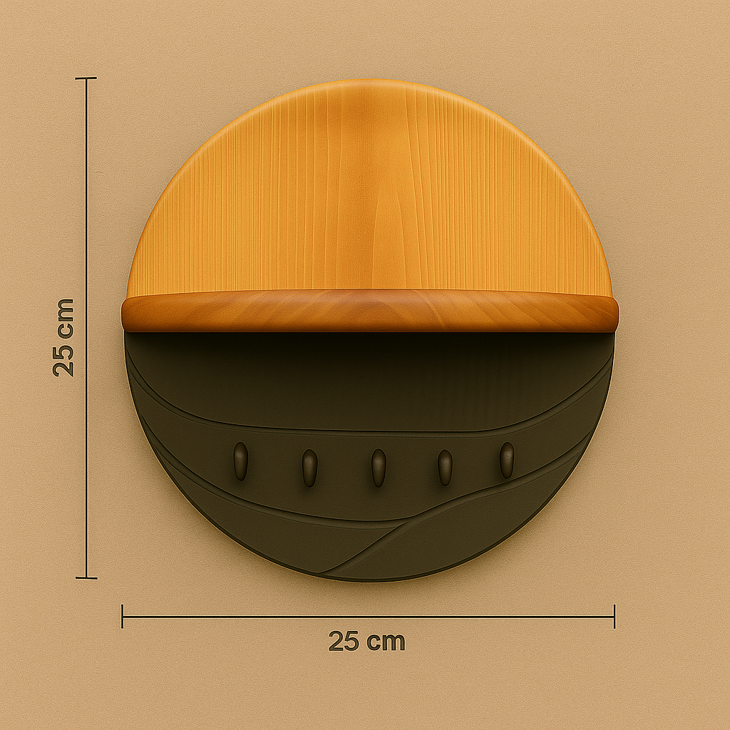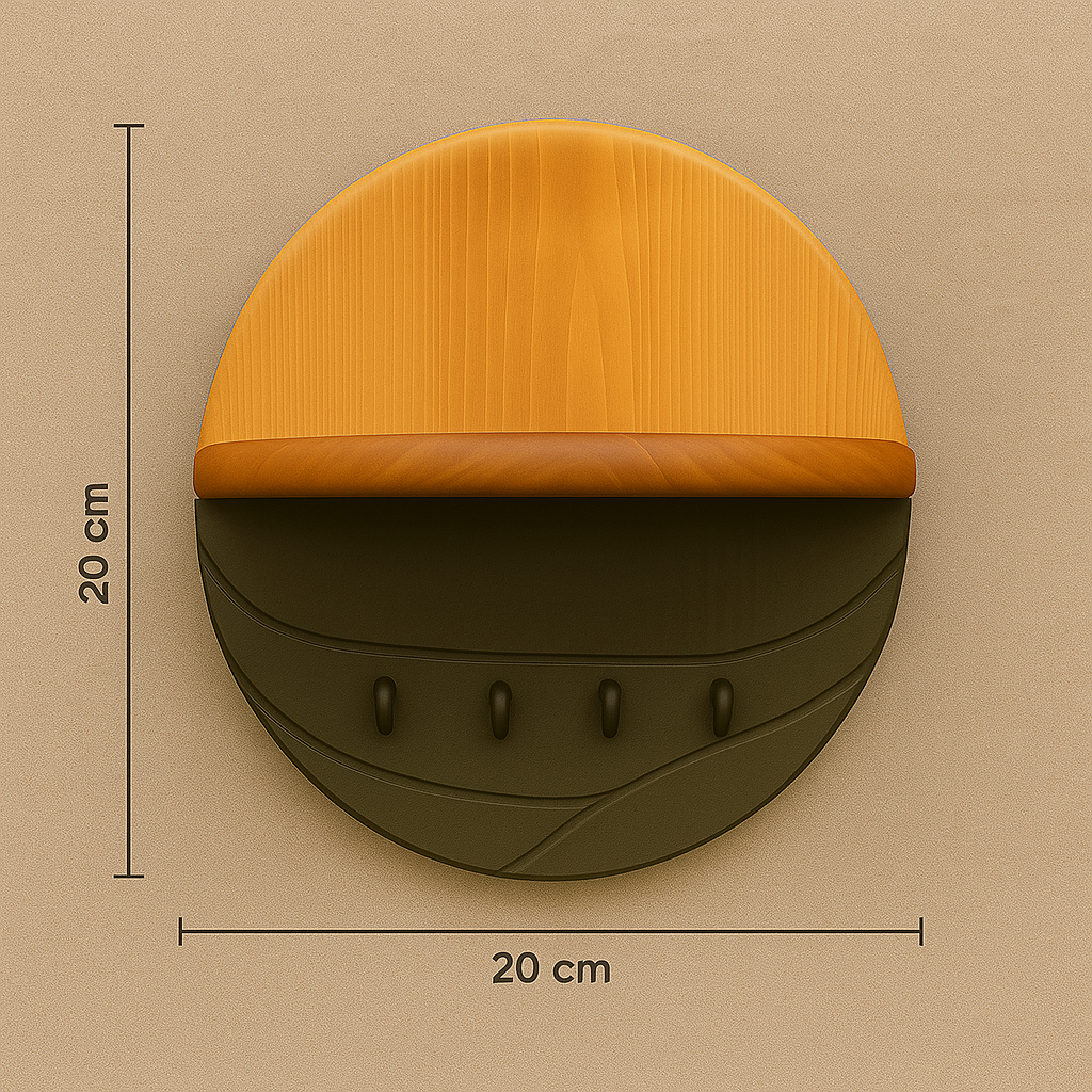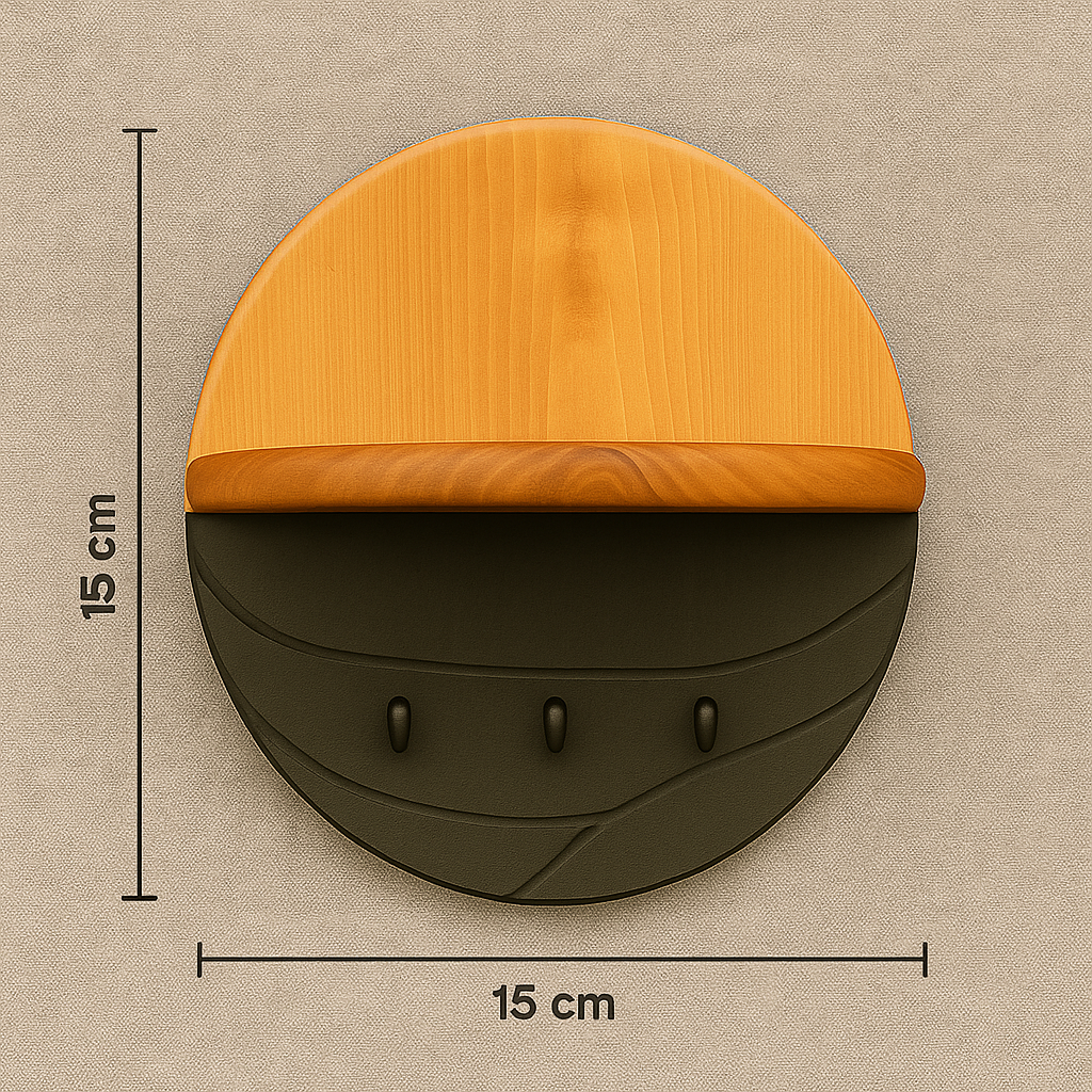 Doğal ahşap malzeme ile tasarlanan bu dekoratif yuvarlak duvar anahtarlığı, modern ve sıcak tasarımıyla yaşam alanlarınızda hem şıklık hem de düzen sağlar.