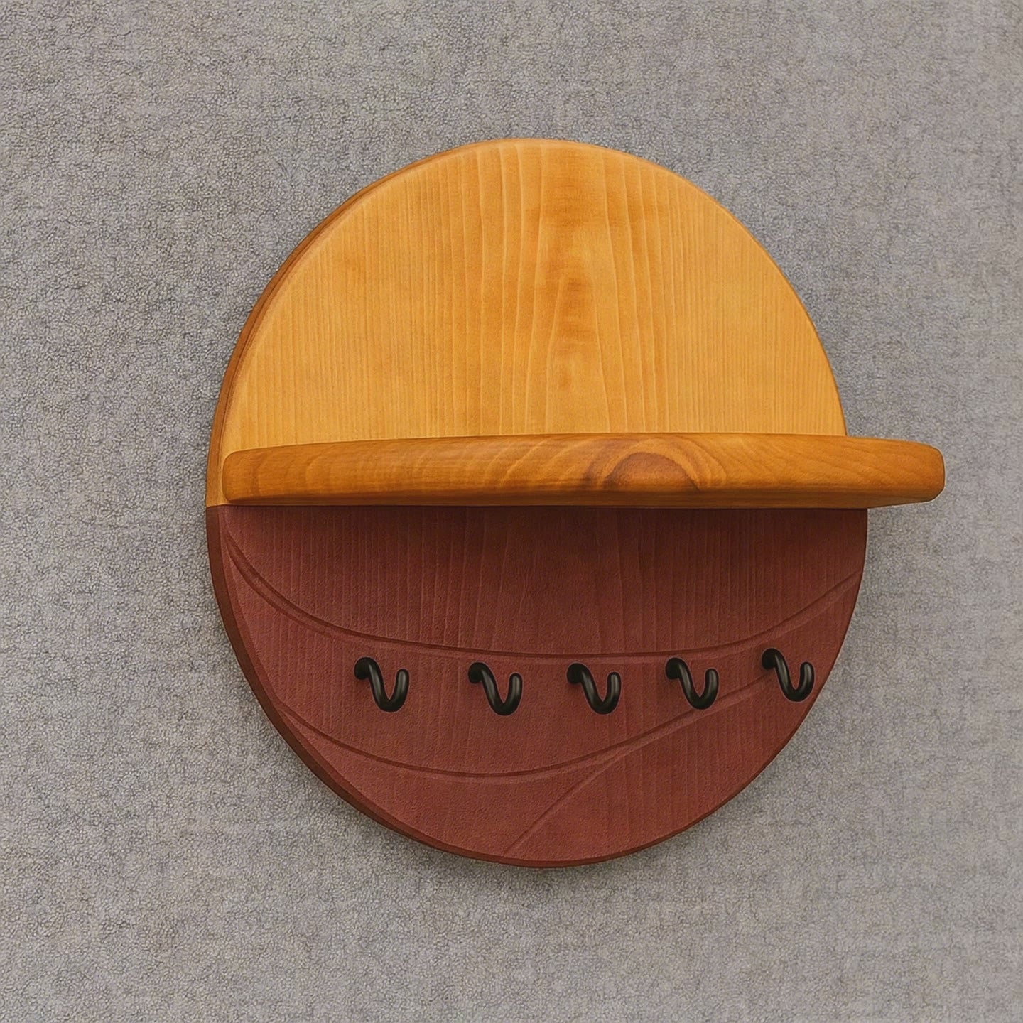 Ahşap Duvar Anahtarlık & Raflı Anahtar Askısı – Dekoratif Yuvarlak Ahşap Keyholder – Özel Ölçü Üretim