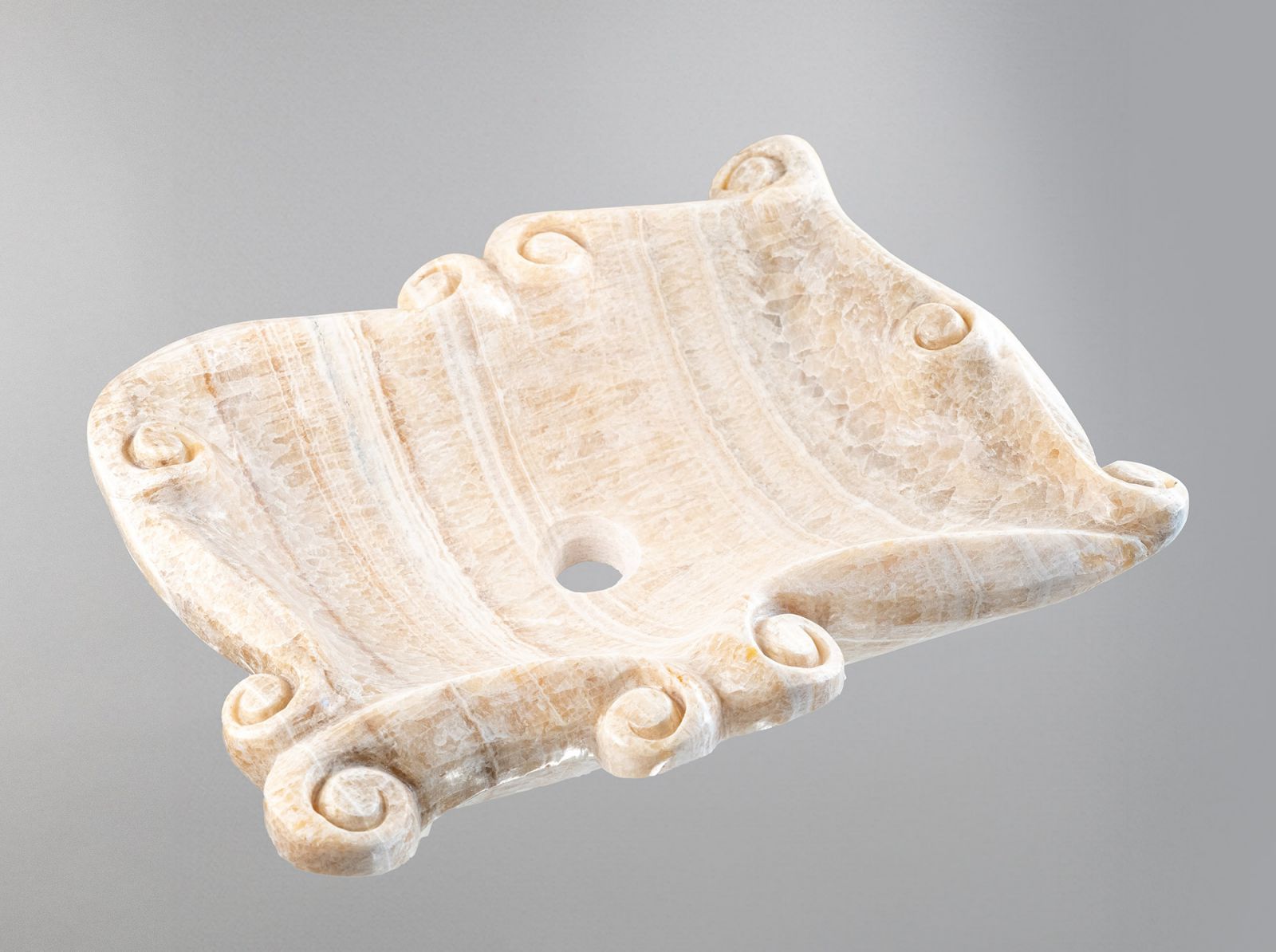 Her banyo tasarımına uyum sağlayan bu doğal taş mermer lavabo, özellikle butik oteller, lüks rezidanslar, spa ve wellness alanlarında tercih edilen premium bir üründür. Benzersiz formundaki spiral ve kıvrımlı detaylar, ustalıkla yapılan oyma işlemeyi ön plana çıkarır.