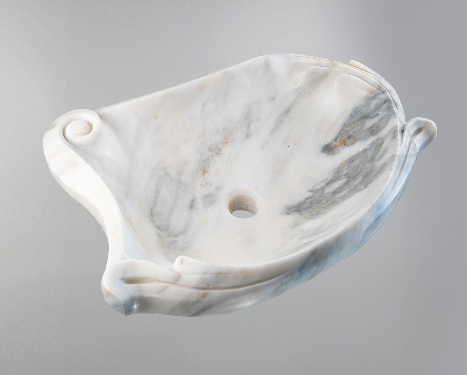 Bu modern ve organik hatlara sahip el oyma mermer lavabo, tamamen doğal mermer bloktan birebir oyularak üretilmiş premium bir tasarım ürünüdür. Asimetrik formu, heykelsi kıvrımları ve yumuşak geçişli damar yapısı sayesinde banyolara sanatsal bir dokunuş katar.