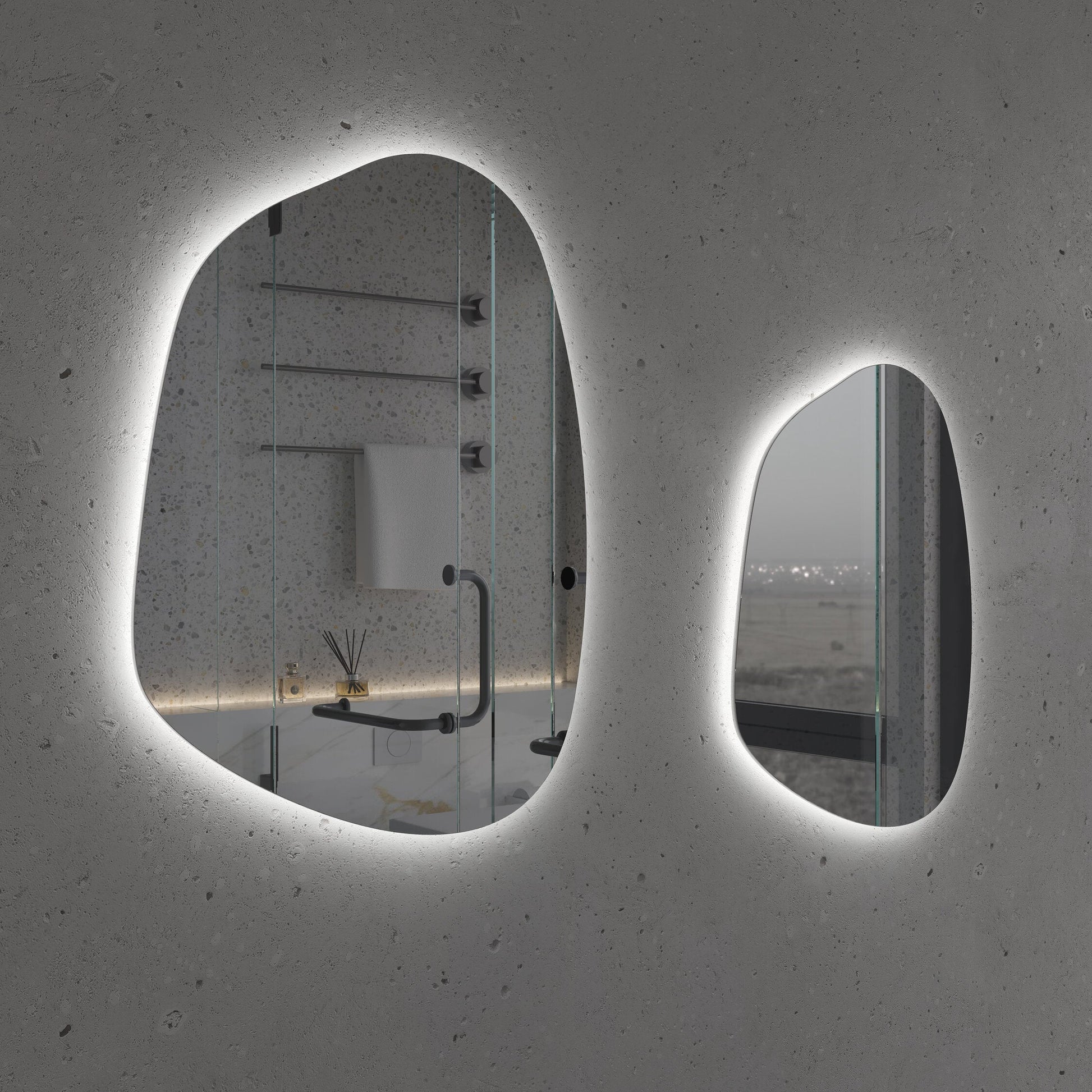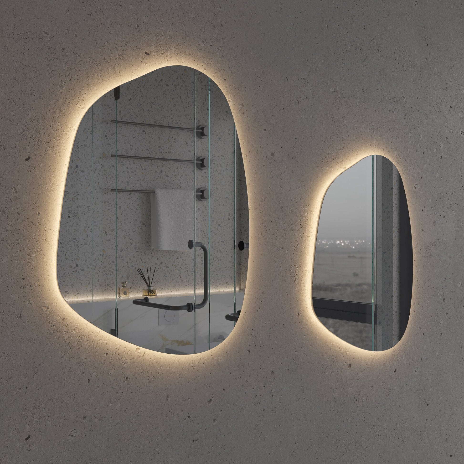 Organik, yumuşak hatlı tasarımı ve arka plan LED aydınlatması sayesinde banyo, yatak odası, makyaj alanı veya antre gibi alanlara hem dekoratif hem de fonksiyonel bir şıklık kazandırır.