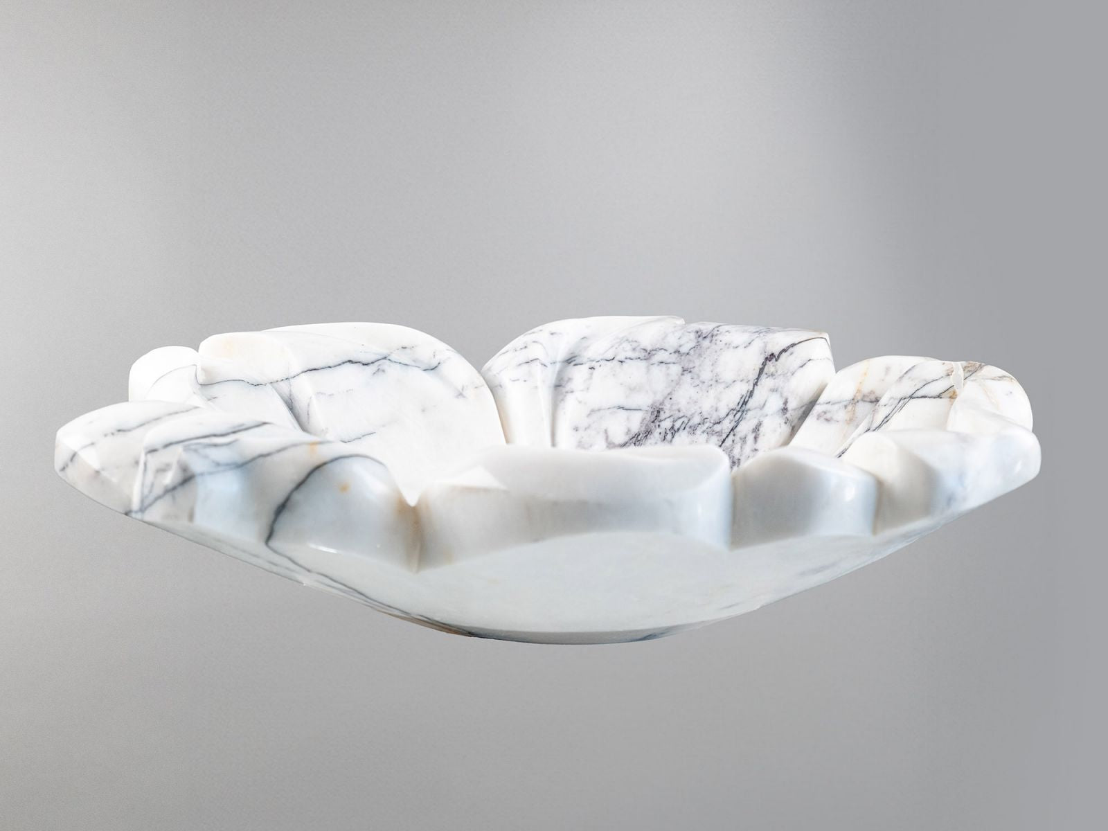 Bu gösterişli ve sanatsal tasarımlı White Marble (White Mermeri) lavabo, tamamen doğal taşın eşsiz güzelliğini ortaya çıkaran özel bir el işçiliği ürünüdür. Beyaz zemin üzerine yayılan gri damarlar ve kabartmalı organik yaprak kıvrımları, bu lavaboyu yalnızca bir kullanım ürünü değil, aynı zamanda bir tasarım objesi haline getirir.